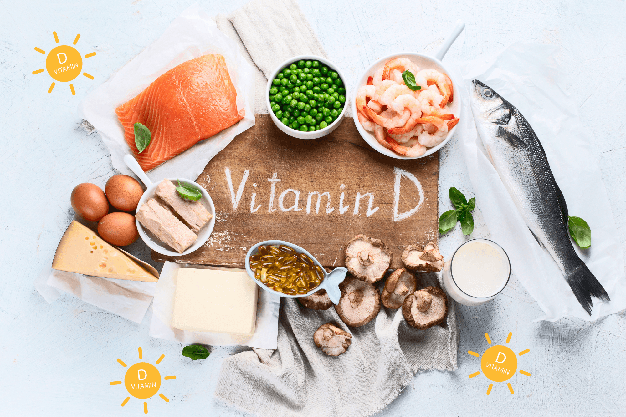 De belangrijkste bron van vitamine D is zonlicht. Wanneer je huid wordt blootgesteld aan UVB-straling, maakt je lichaam zelf vitamine D aan. Echter, in de wintermaanden is de zonkracht in veel landen niet sterk genoeg om voldoende vitamine D te produceren. Het is belangrijk te weten dat bij het gebruik van zonnecrème of zonneblokkers de opname van vitamine D via de huid wordt verhinderd. Daarom is het belangrijk om vitamine D ook uit voeding en/of supplementen te halen. Voedingsmiddelen die rijk zijn aan vitamine D zijn: